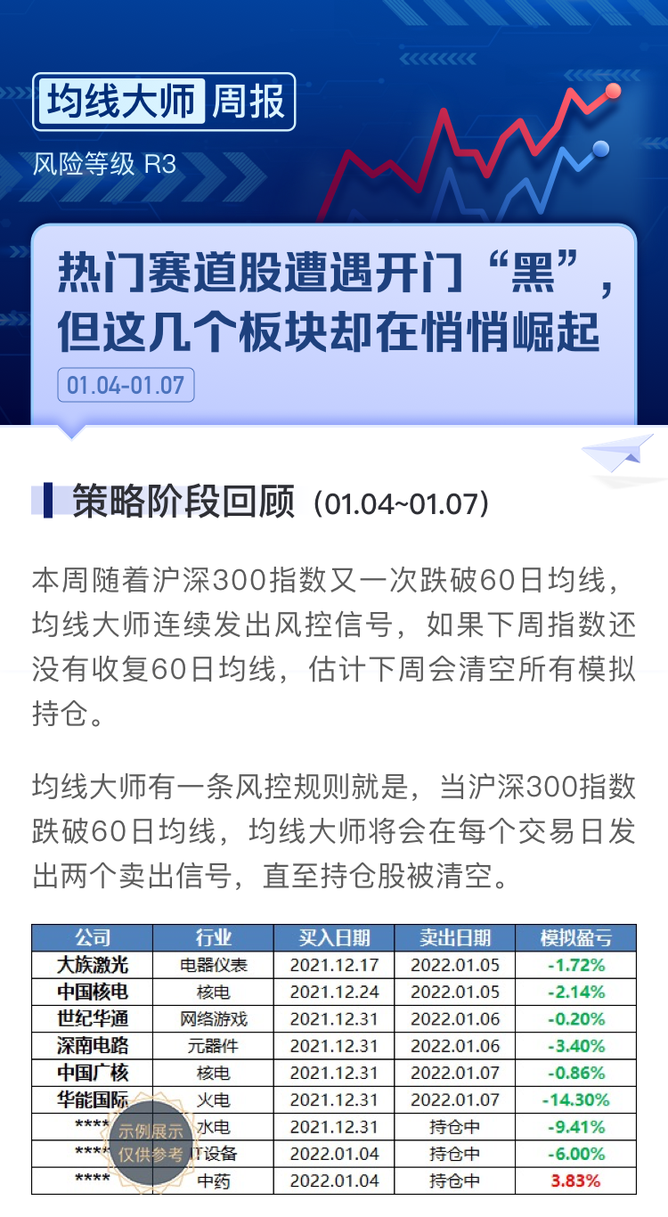 热门赛道股遭遇开门“黑”,但这几个板块却在悄悄崛起—均线大师(风险等级R3)周报(01.04~01.07)